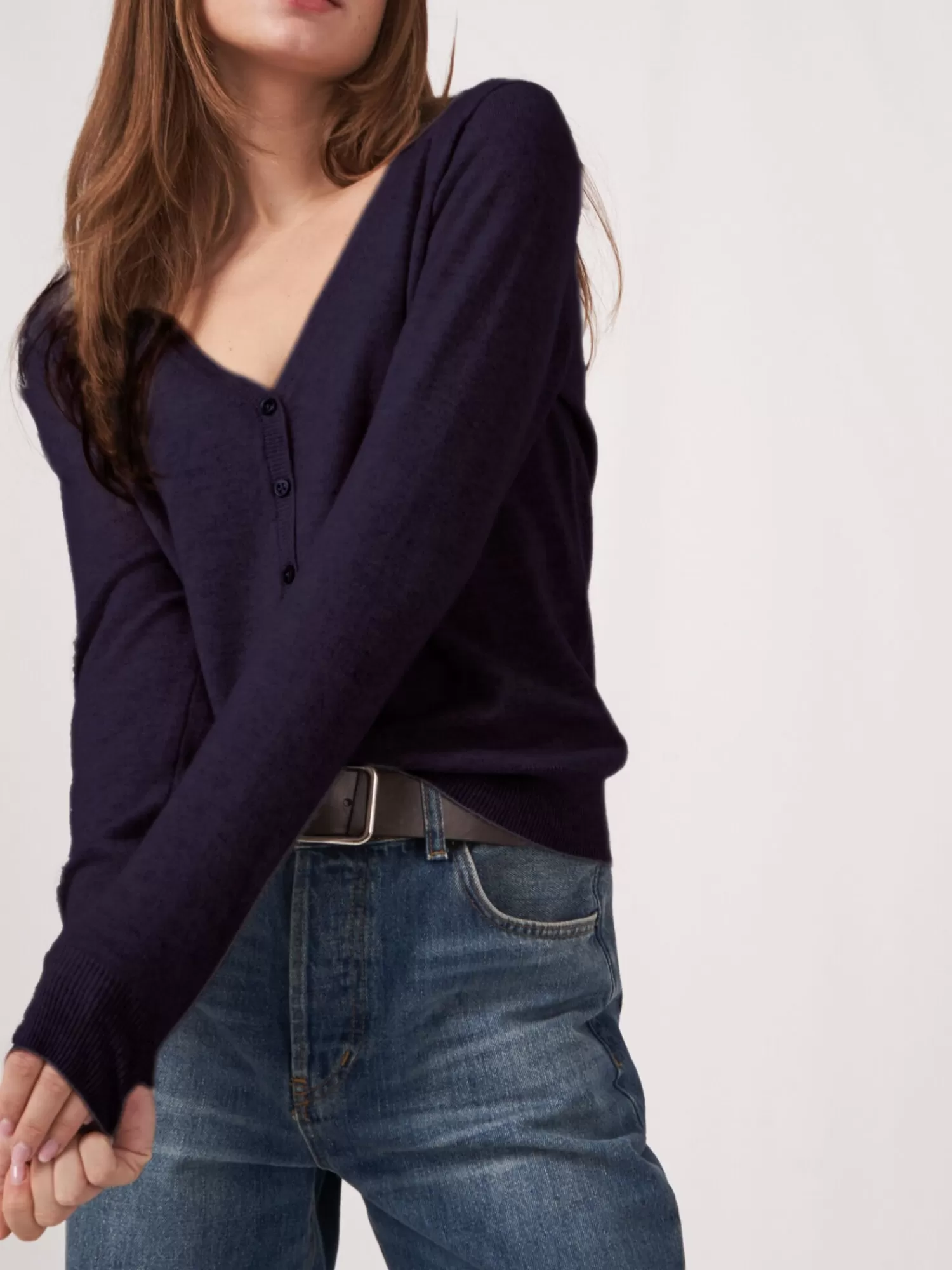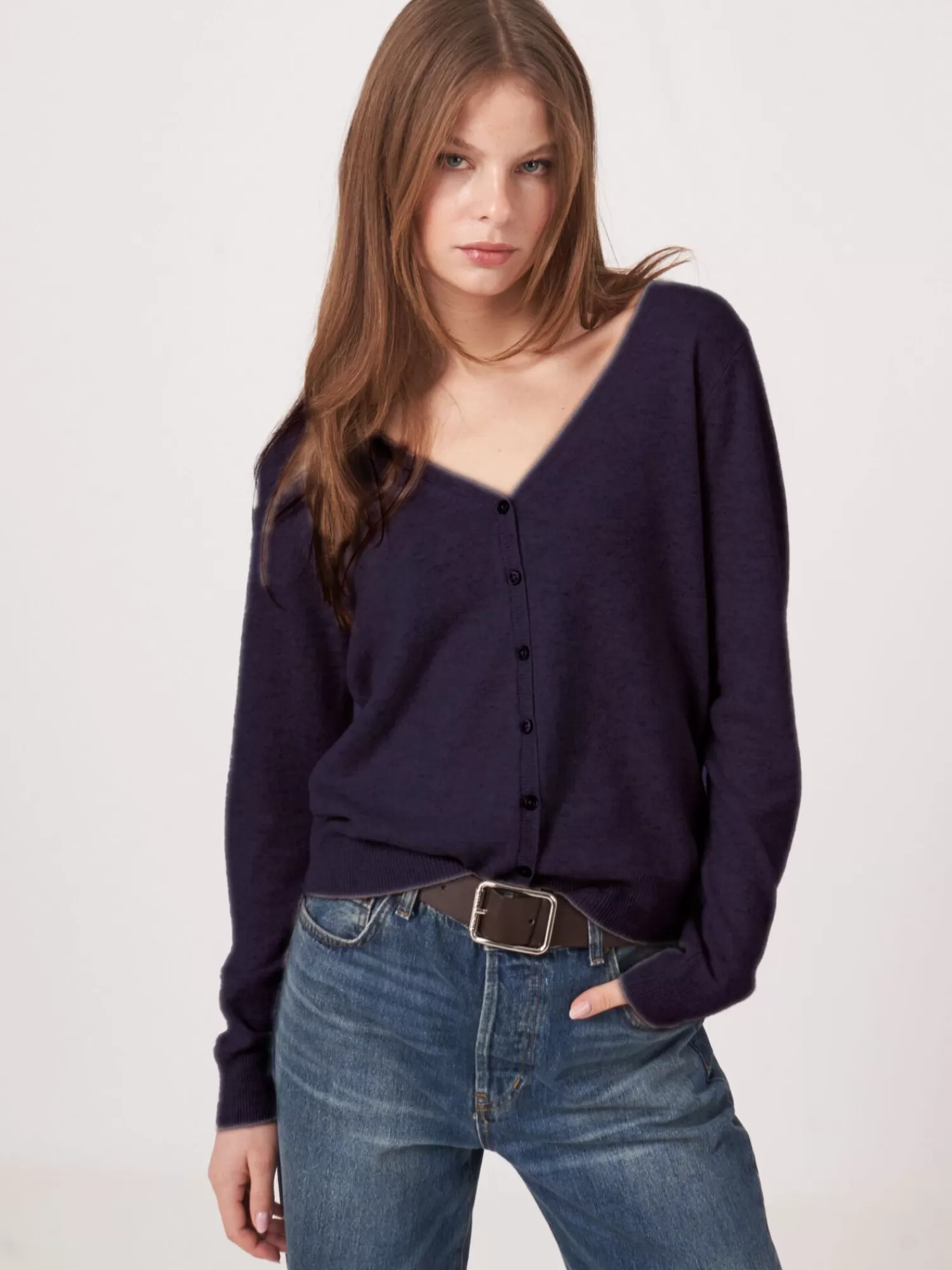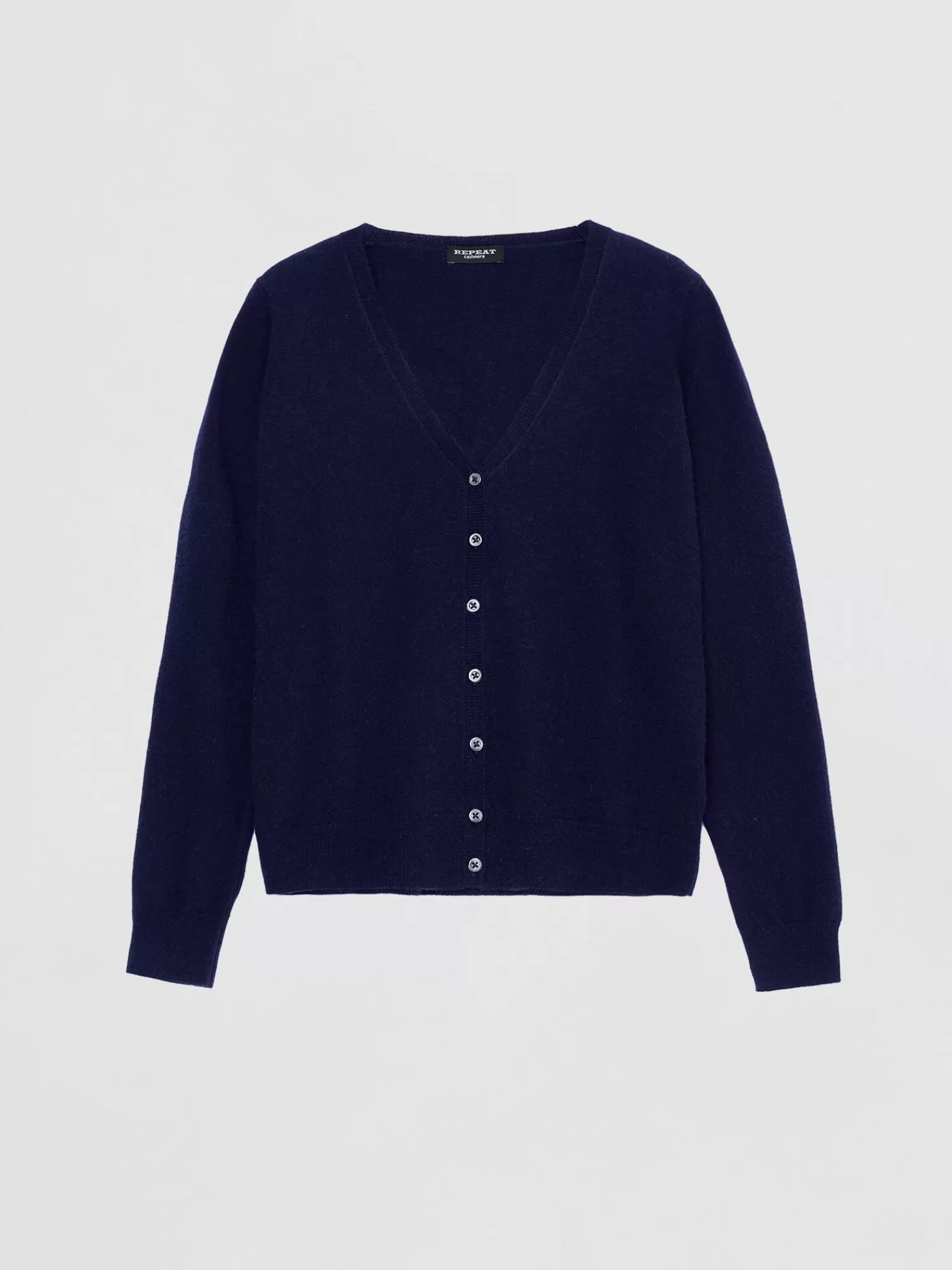 REPEAT cashmere Vesten | Organic Cashmere*Basic organisch cashmere vest met V-hals Navy