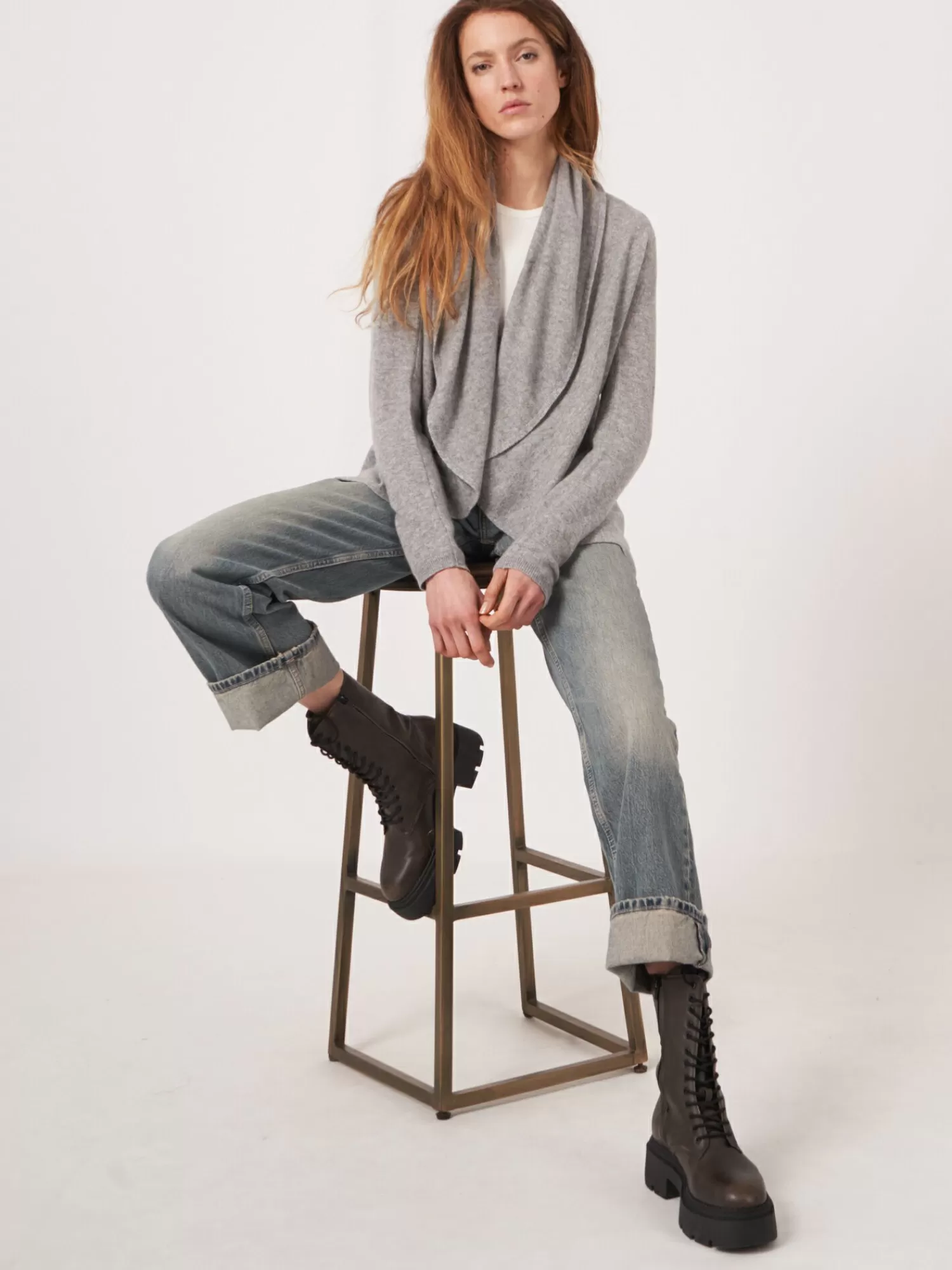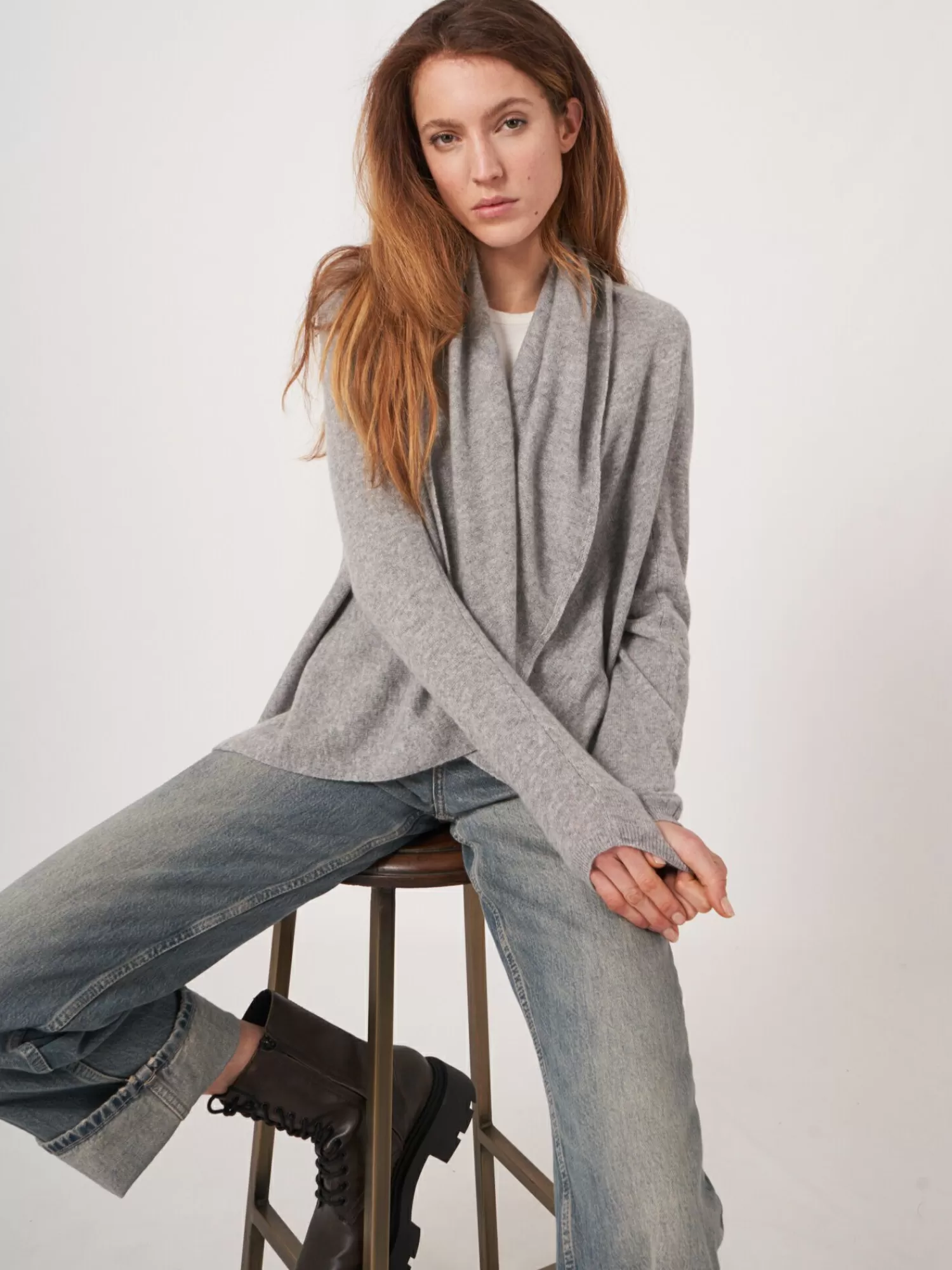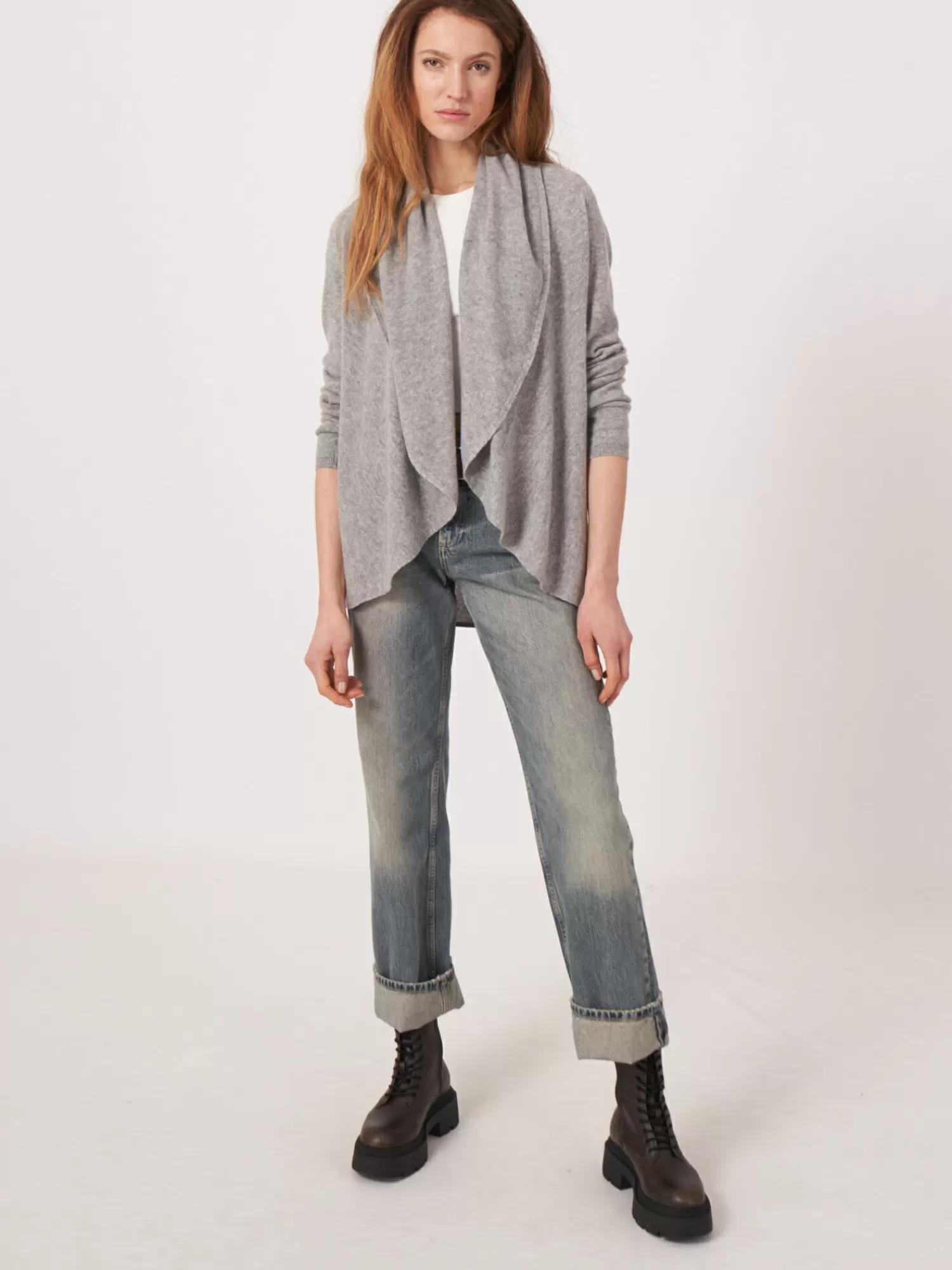 REPEAT cashmere Vesten | Organic Cashmere*Open organisch cashmere vest met sjaalkraag LightGrey