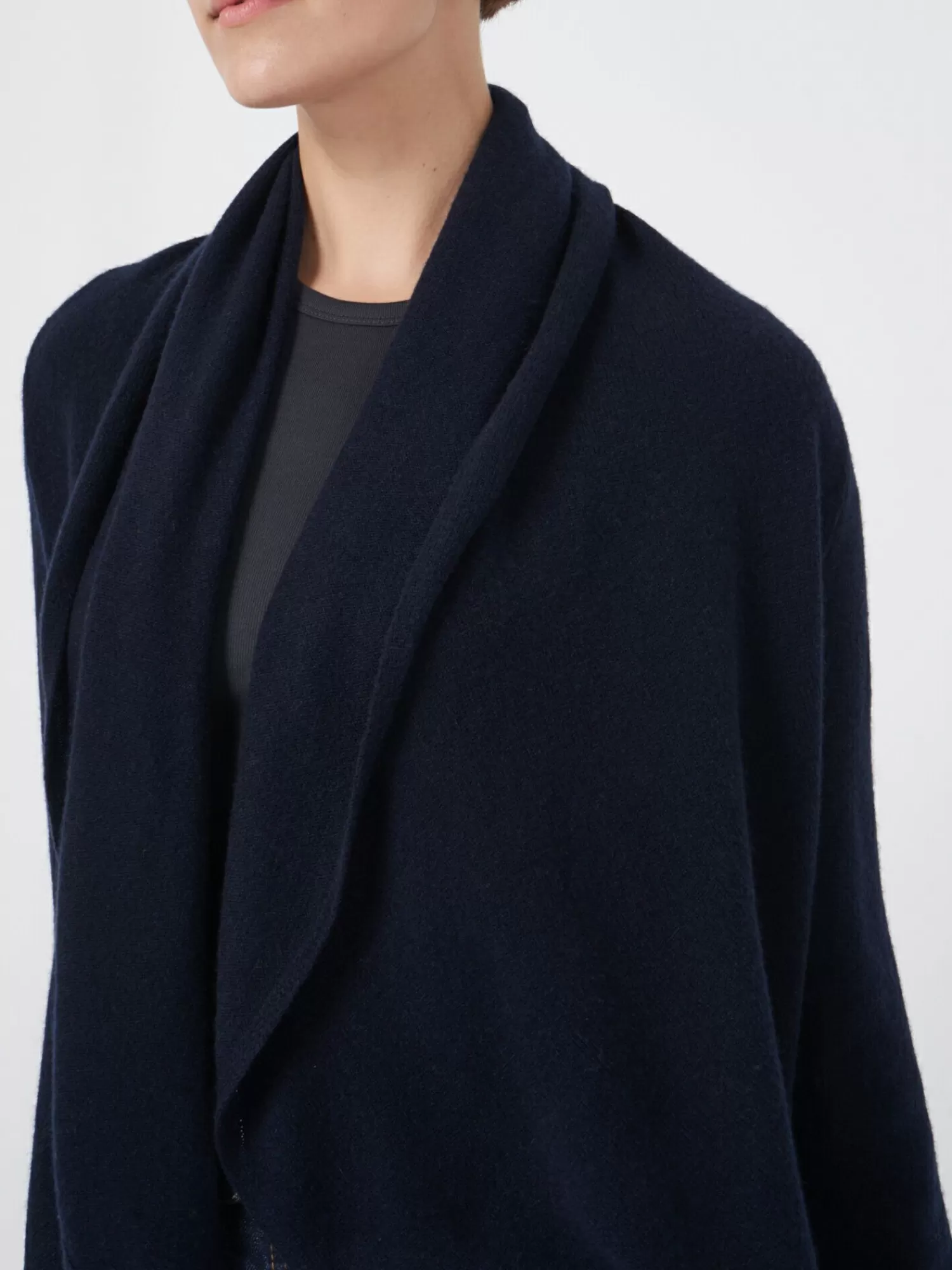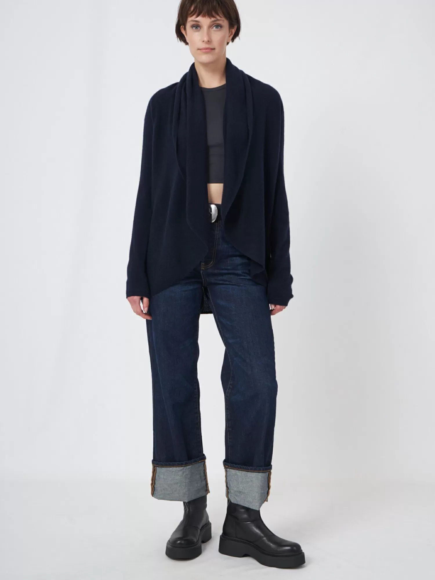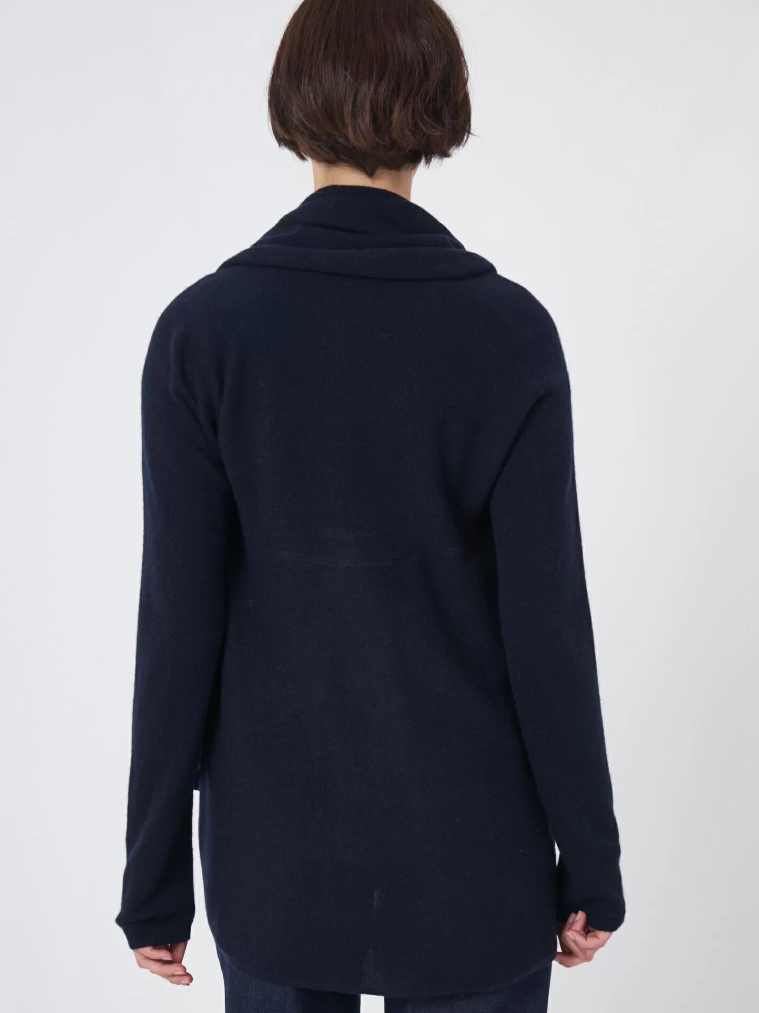 REPEAT cashmere Vesten | Organic Cashmere*Open organisch cashmere vest met sjaalkraag Navy