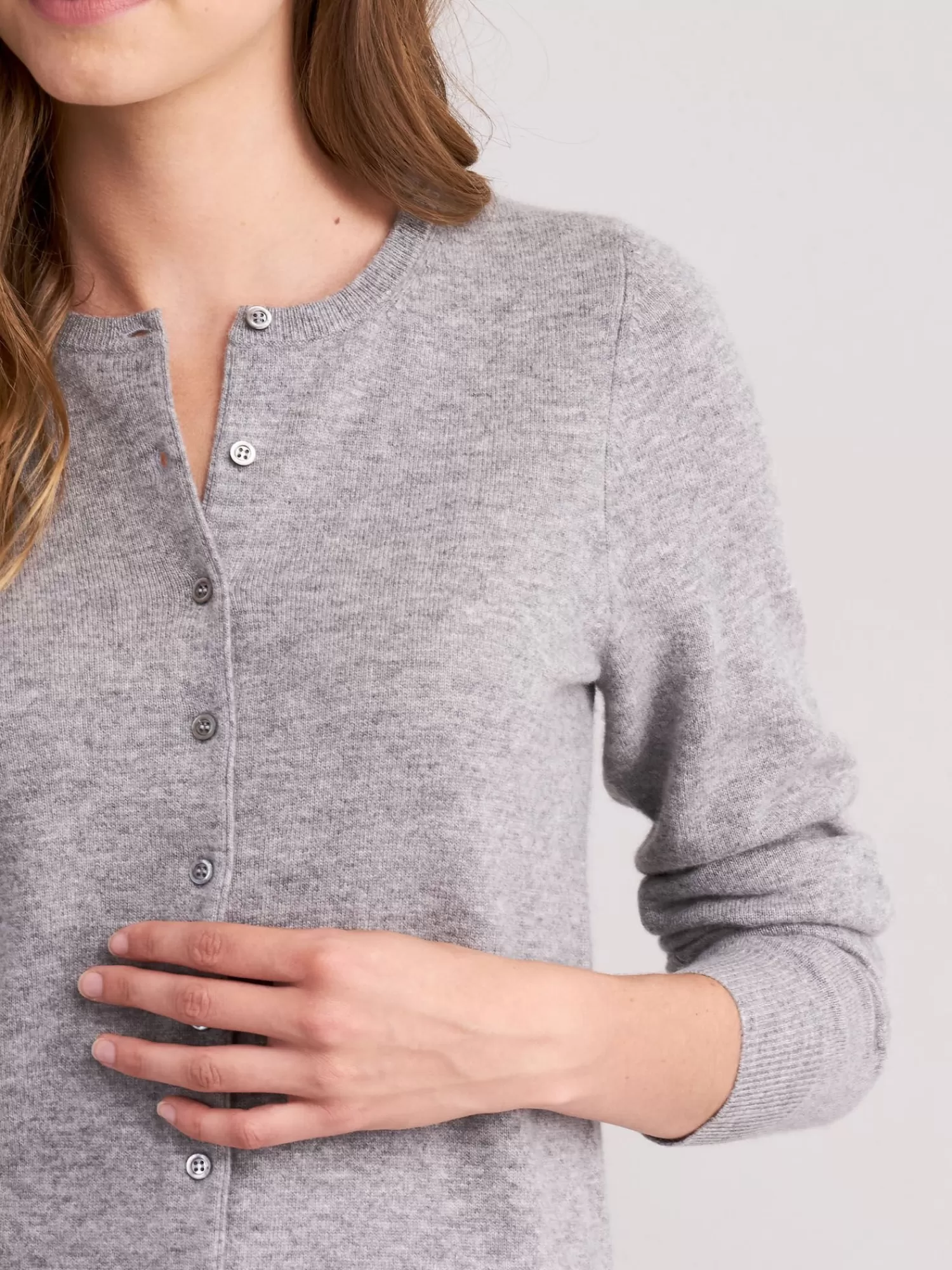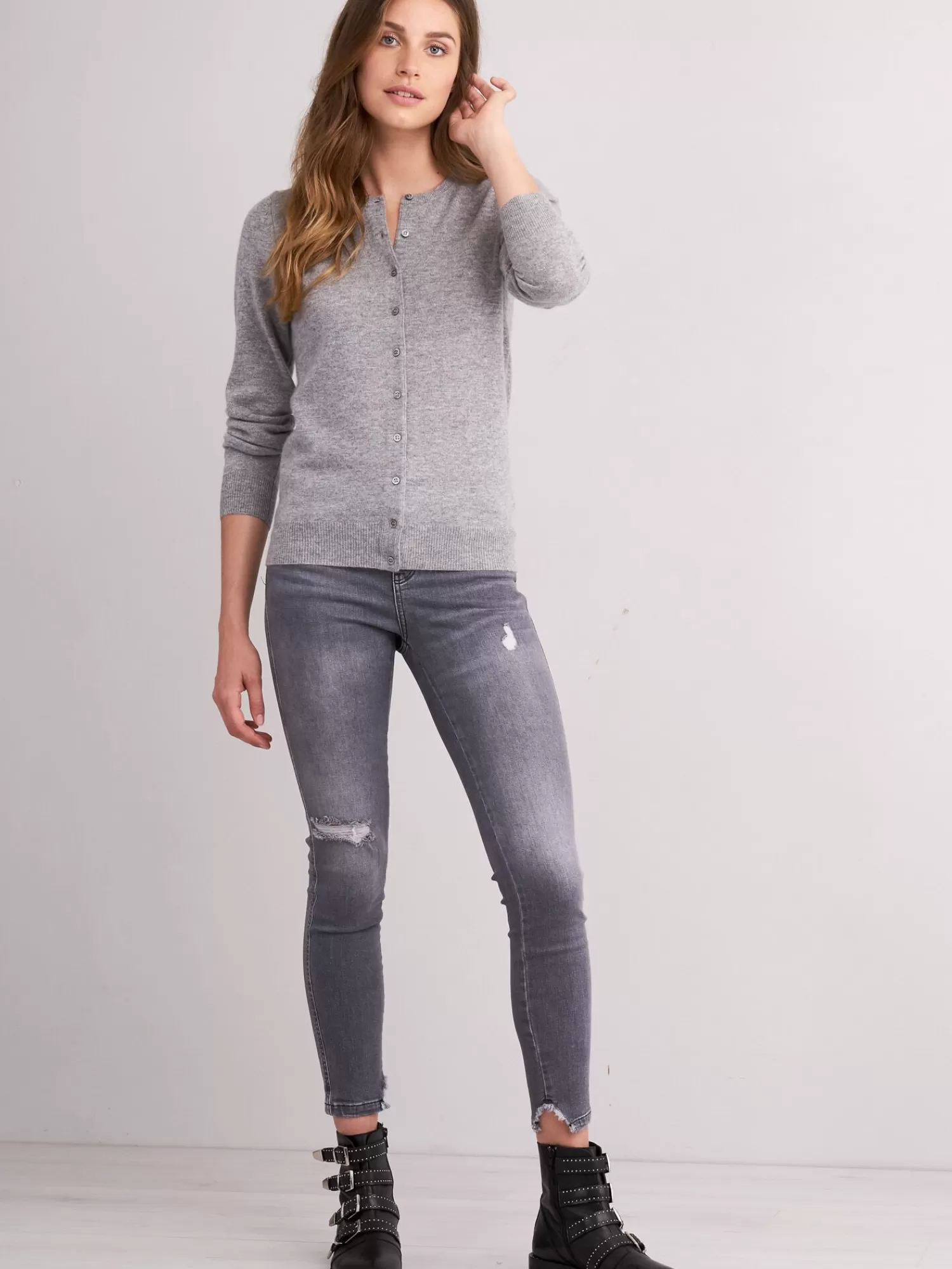 REPEAT cashmere Vesten*Basic cashmere cardigan met ronde hals LightGrey