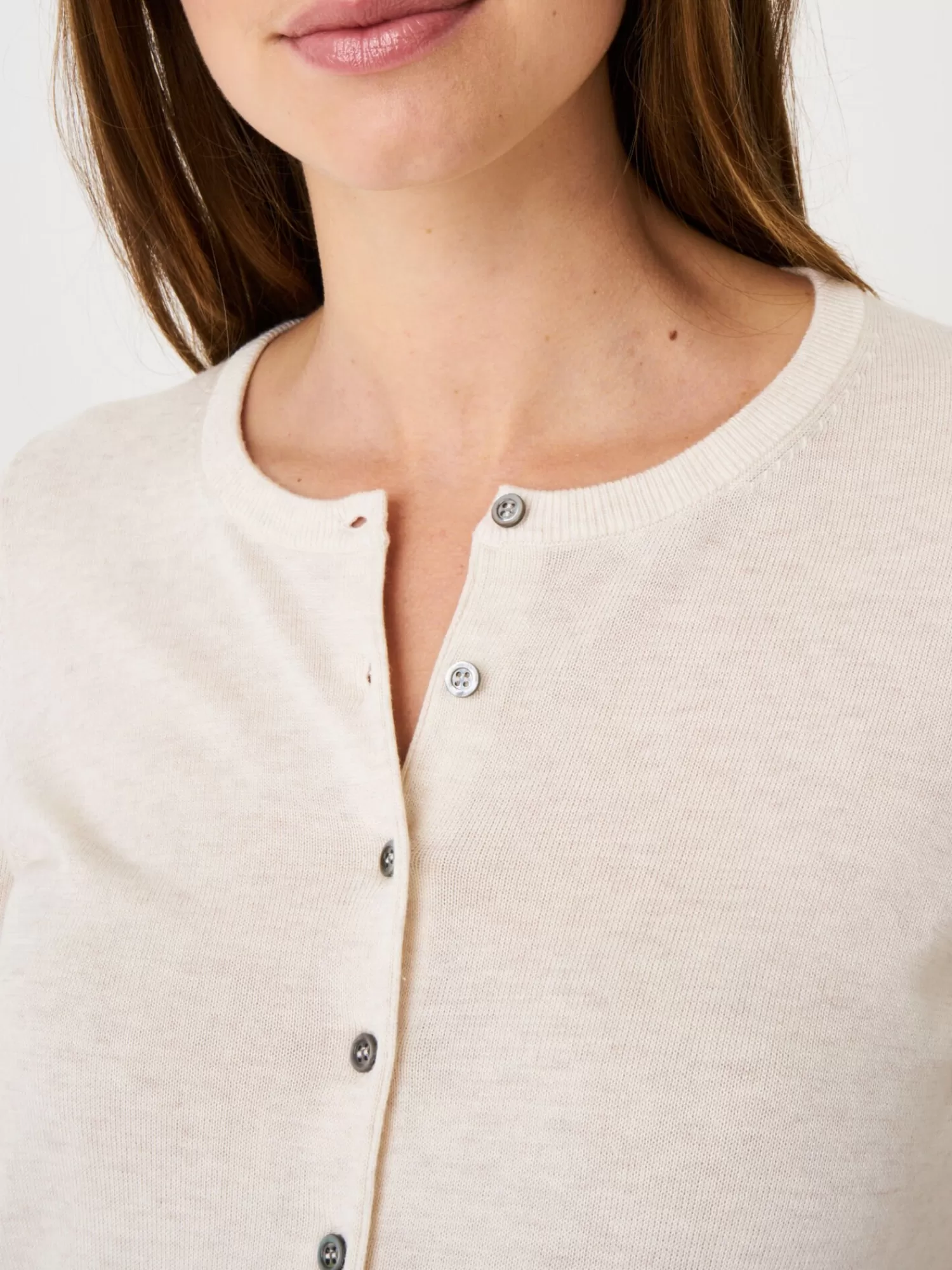 REPEAT cashmere Vesten*Basic fijn gebreid cardigan in katoenmix Ivory