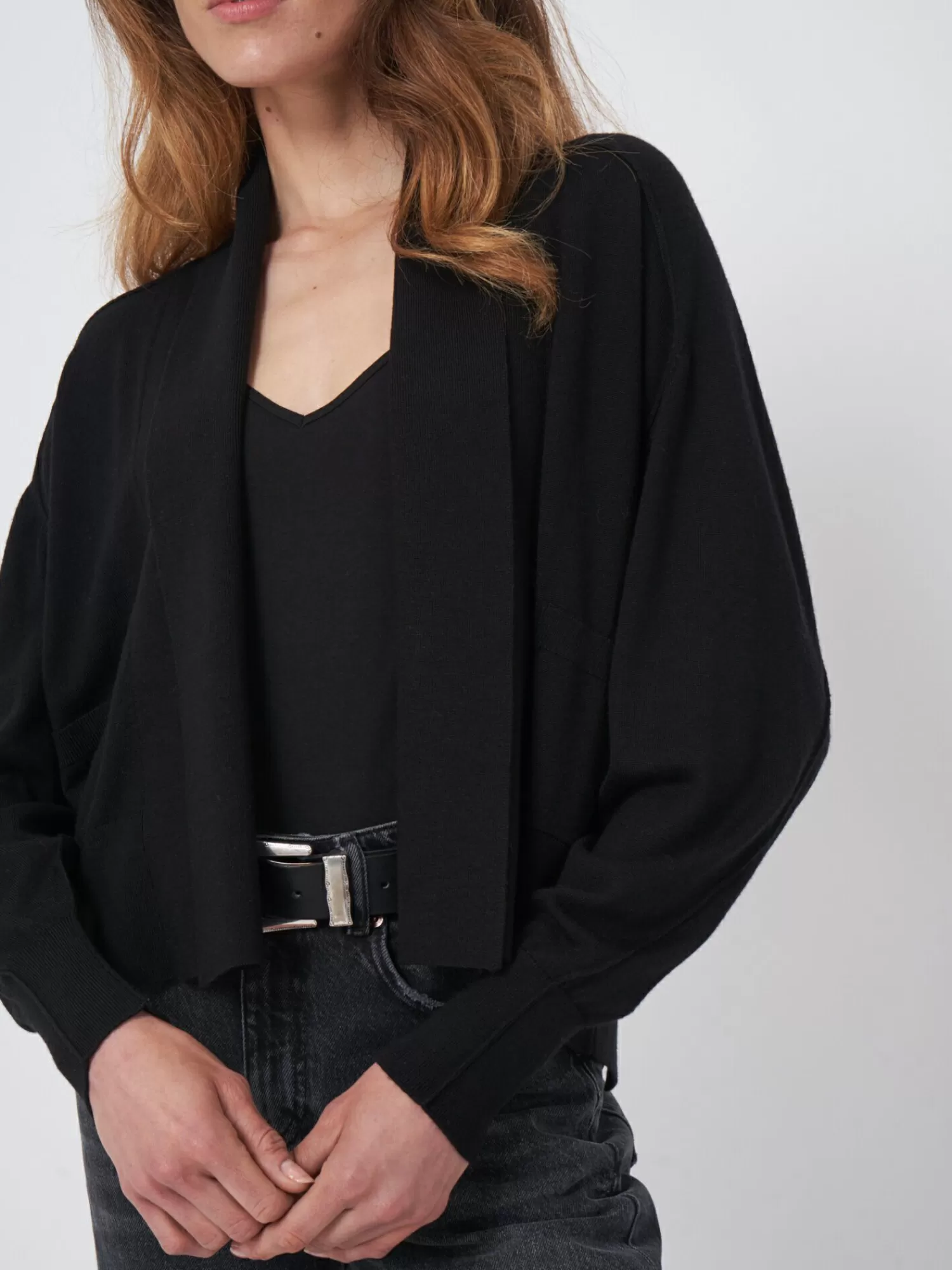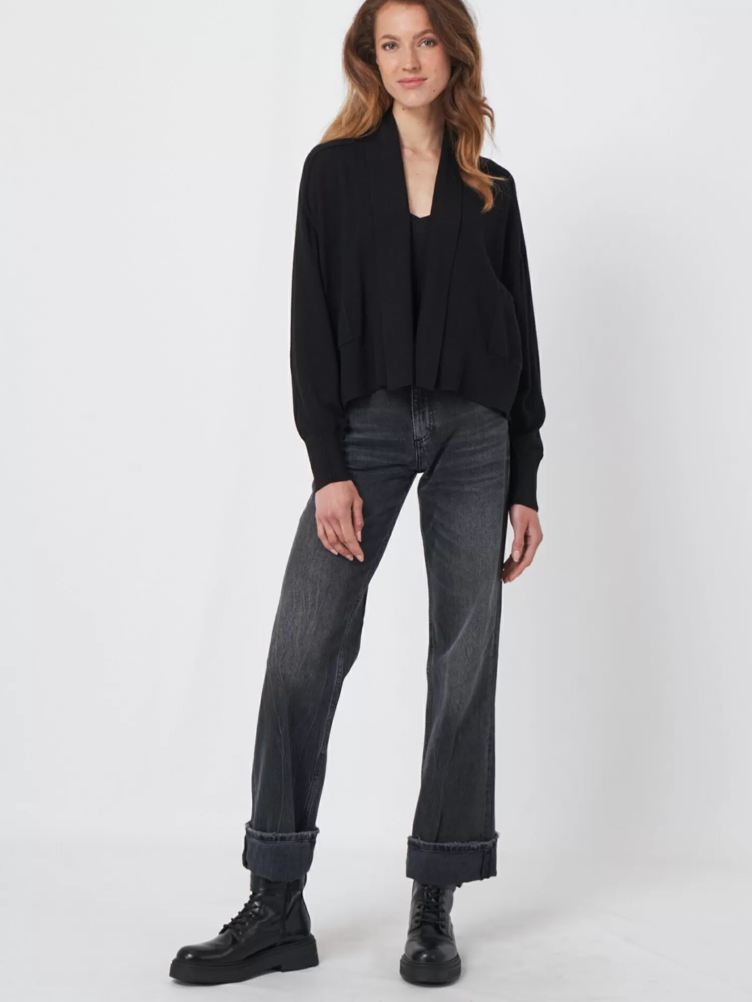 REPEAT cashmere Vesten*Fijn gebreid open vest met sjaalkraag van wolmix Black