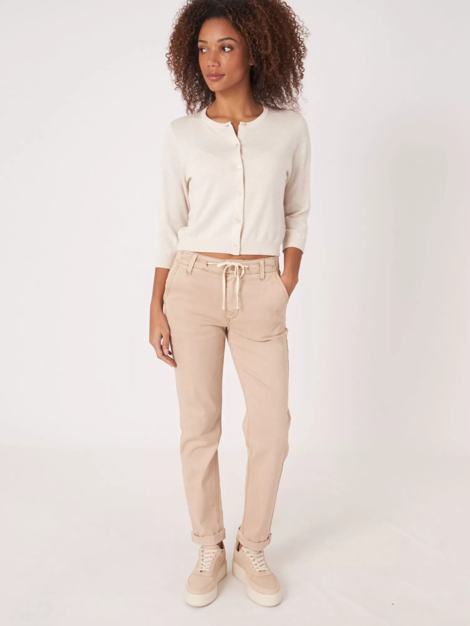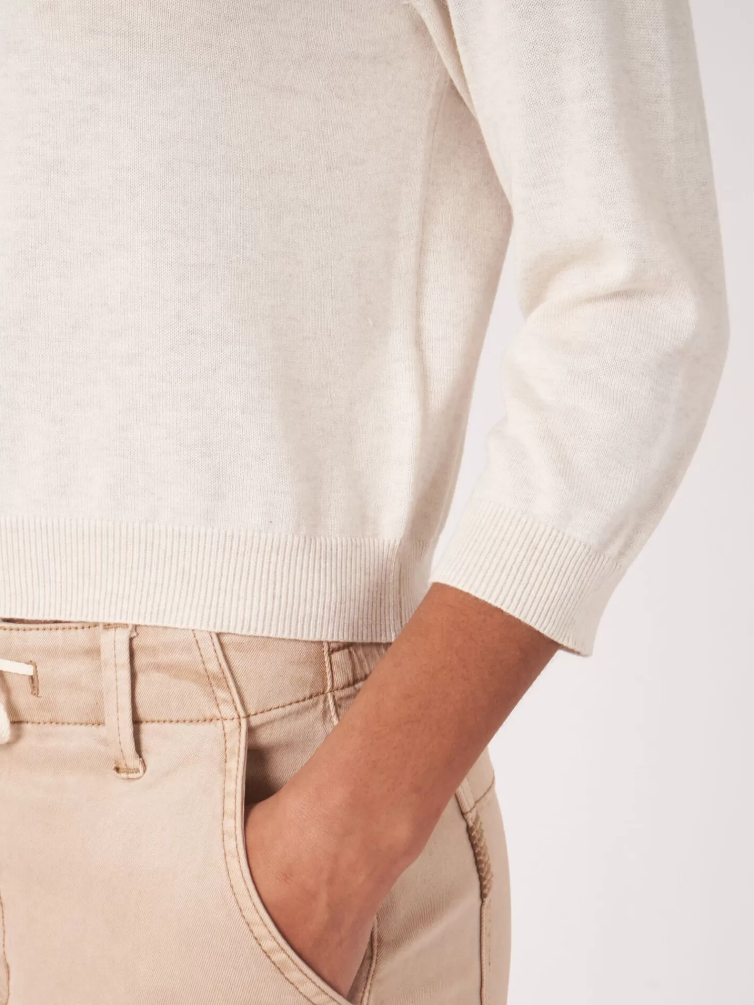 REPEAT cashmere Vesten*Kort vest met ronde hals van biologisch katoen Ivory