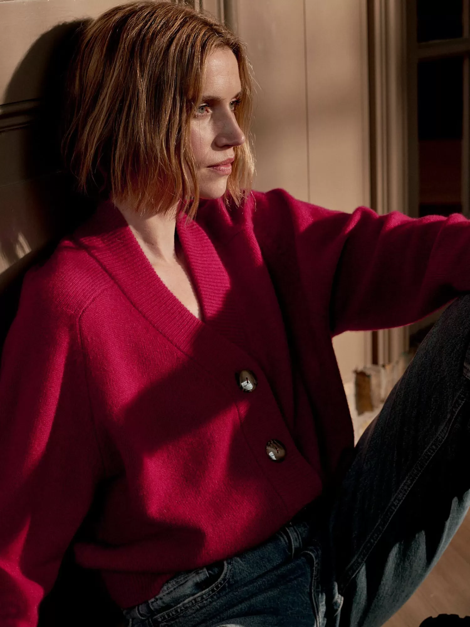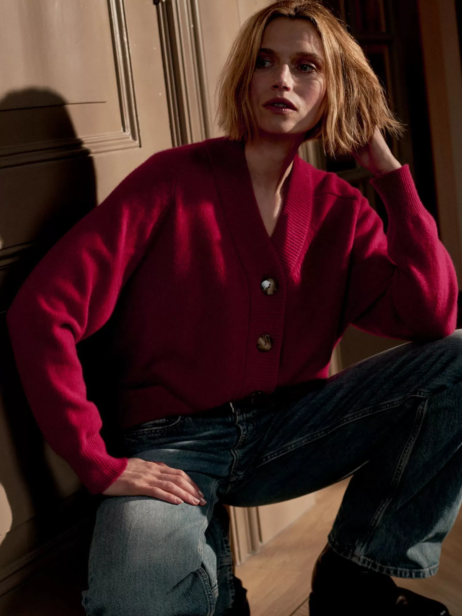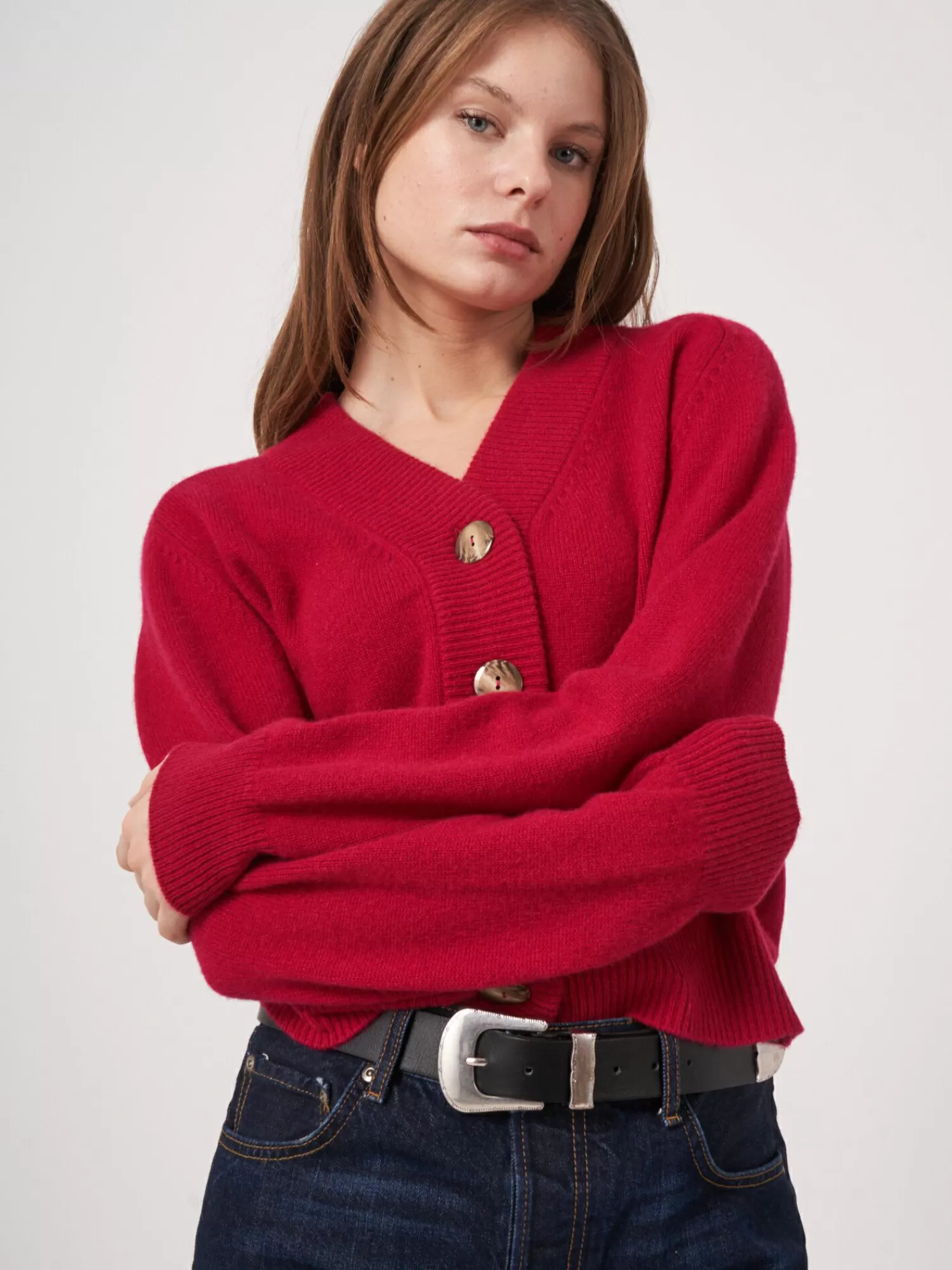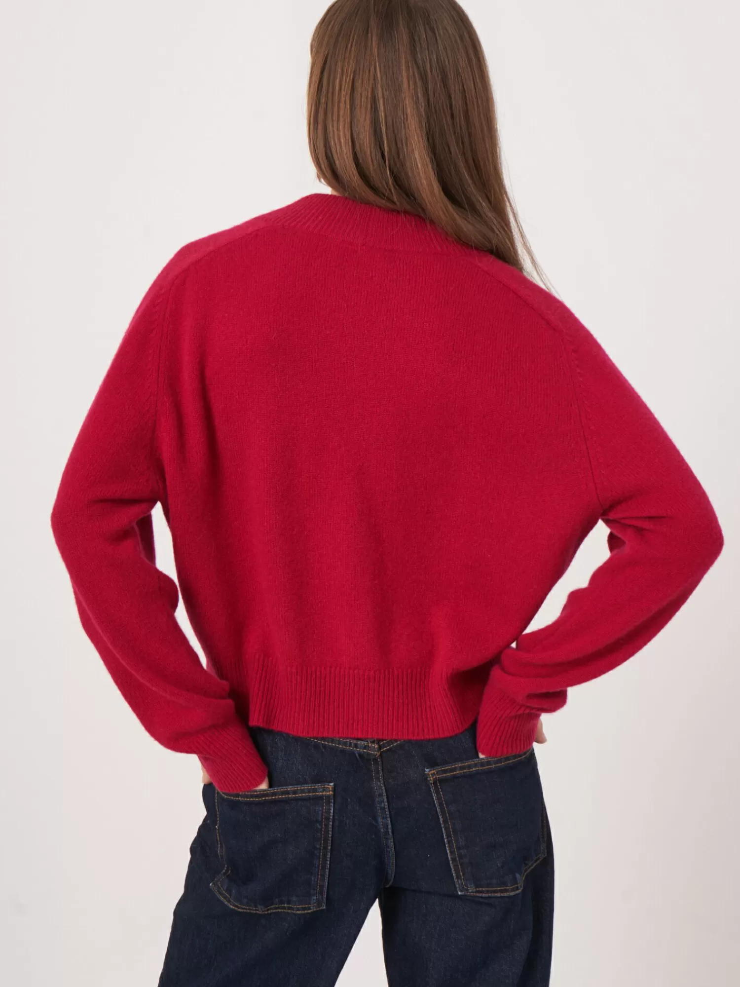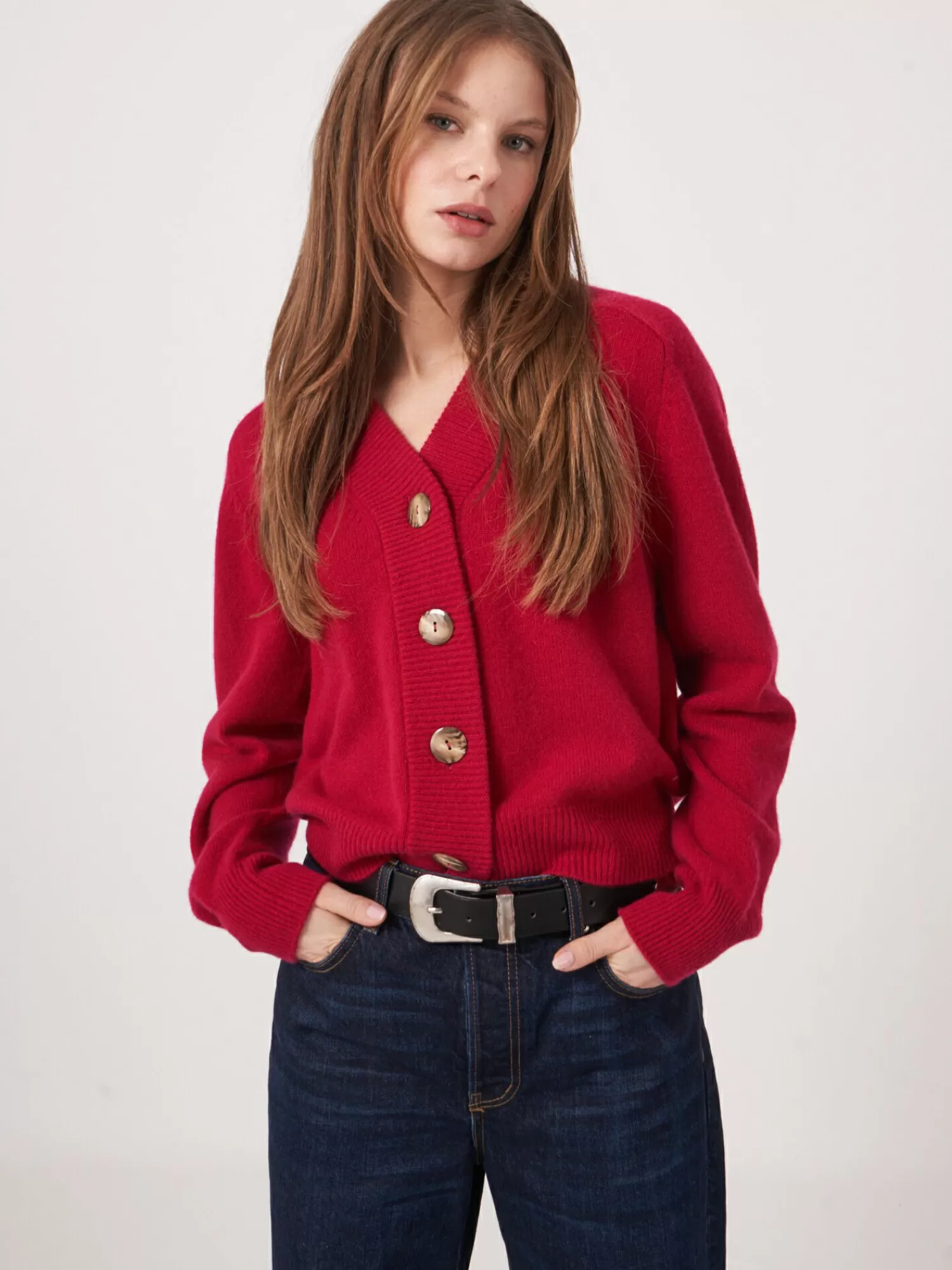 REPEAT cashmere Vesten*Korte cashmere cardigan met oversized knopen Ruby