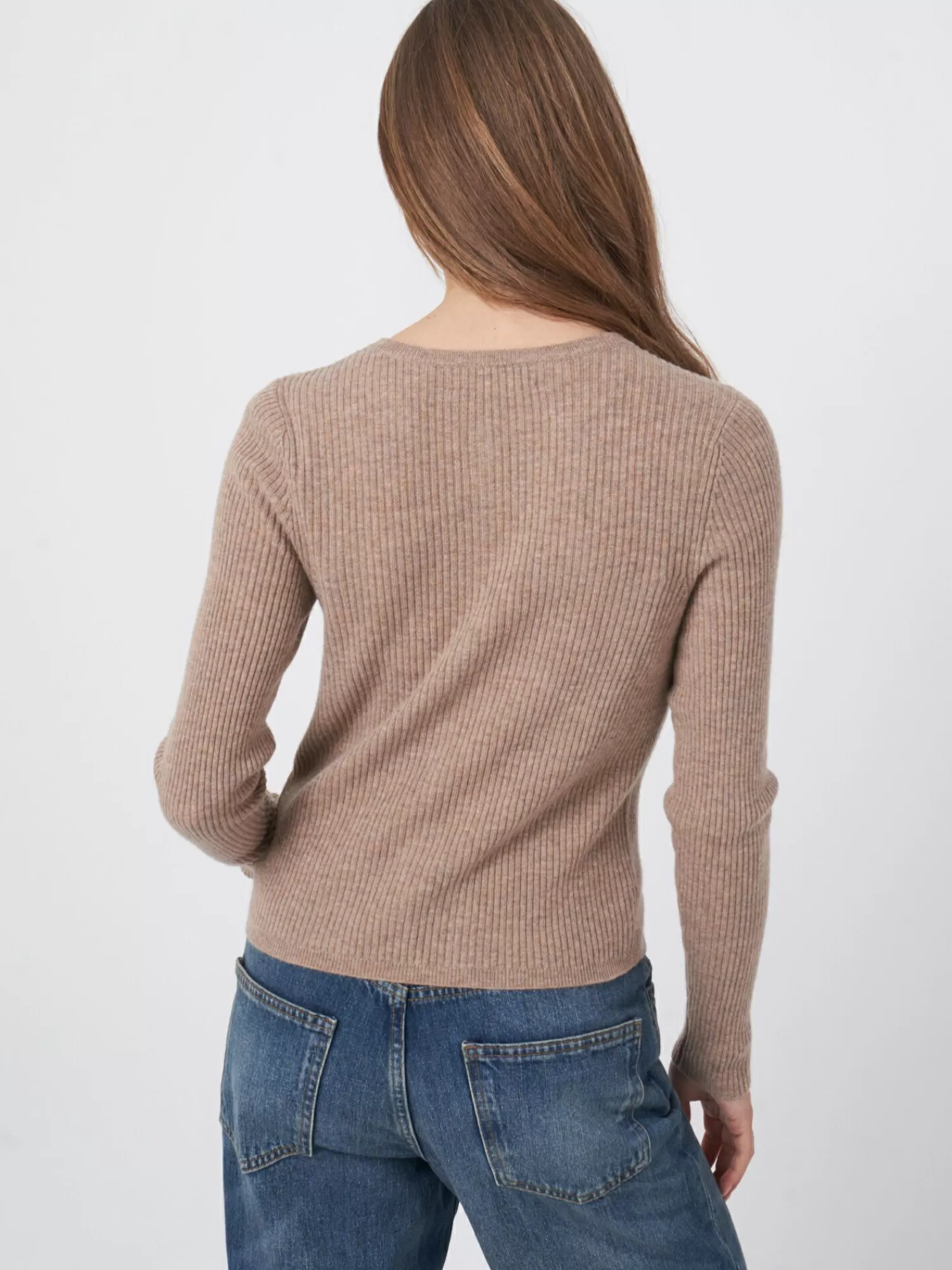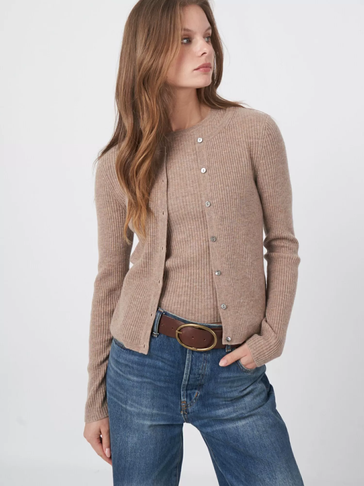 REPEAT cashmere Vesten*Ribgebreide cardigan van cashmere mix Taupe