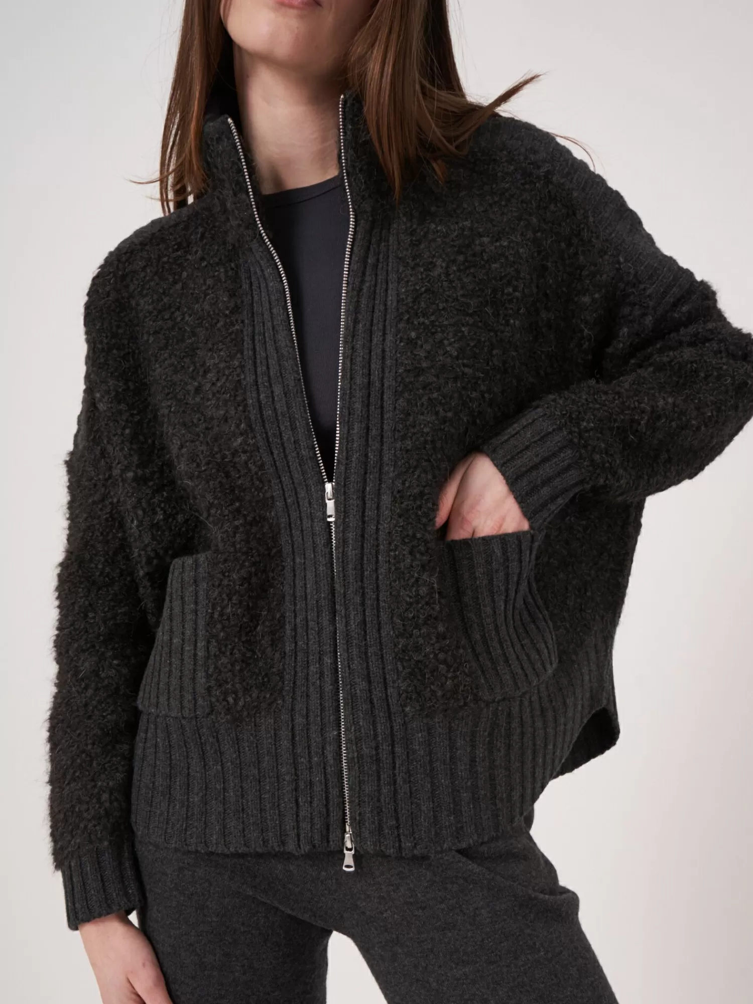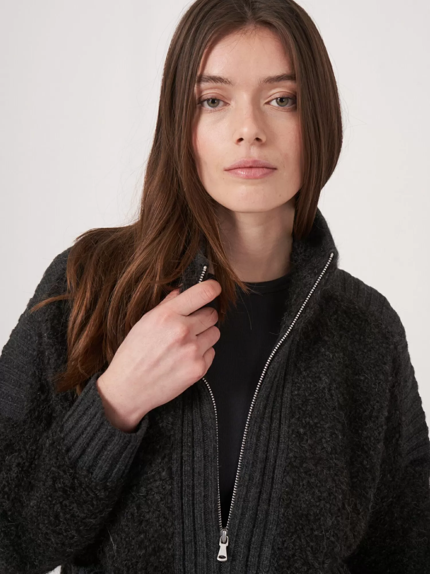 REPEAT cashmere Vesten*Vest met rits van alpaca wolmix Anthra